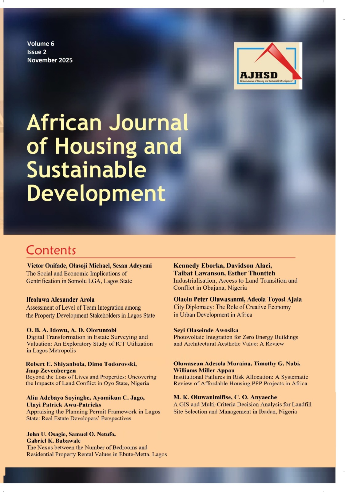 Vol 6 No 2 (2025): African Journal of Housing and Sustainable Development